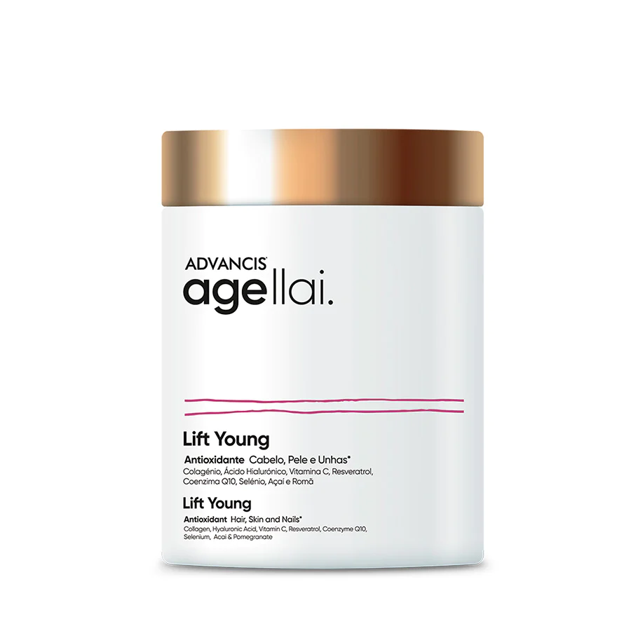 Advancis Agellai Lift Young Pó 300g é um suplemento alimentar que contém na sua composição Colagénio, Ácido Hialurónico, Vitamina C, Resveratrol, CQ10, Selénio, Açaí e Romã. Contribui para a manutenção da pele, cabelo e unhas saudáveis e bonitos, para a formação do colagénio e tem ainda ação antioxidante, protegendo as células das oxidações indesejáveis.