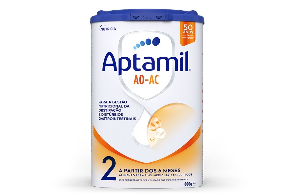 Aptamil® AO-AC 2 é um alimento para fins medicinais específicos indicado para a gestão nutricional de distúrbios gastrointestinais, como a obstipação e cólicas, em lactentes a partir dos 6 meses de vida. Deve ser utilizado como parte de uma alimentação diversificada e não como fonte alimentar única.
