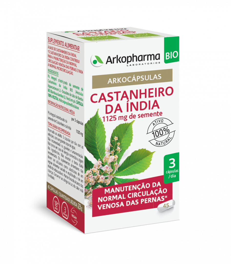 ARKOCÁPSULAS Castanheiro da Índia é um suplemento alimentar à base de Castanheiro da Índia. O Castanheiro da Índia contribui para a manutenção da normal circulação venosa das pernas e para a normal microcirculação.