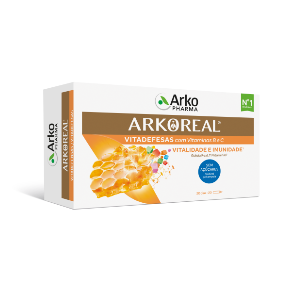 ARKOREAL® Geleia Real Vitaminada sem Açúcar é um suplemento alimentar à base de Geleia Real e 11 Vitaminas. Contém edulcorante. Sem açúcares. A Vitamina A e a Riboflavina (Vitamina B2) contribuem para manutenção de uma pele e visão normais. A Tiamina, a Riboflavina (Vitamina B2), a Niacina, o Ácido Pantoténico, a Biotina, as Vitaminas B6, B12 e C contribuem para o normal metabolismo produtor de energia. A Biotina contribui para o normal metabolismo dos macronutrientes e para o normal funcionamento do sistema nervoso. O Ácido Pantoténico contribui para um desempenho mental normal. As vitaminas B6, B12 e C contribuem para uma normal função psicológica, para o normal funcionamento do sistema imunitário e para a redução do cansaço e da fadiga. A Vitamina D contribui para a manutenção de ossos normais e para a manutenção do normal funcionamento muscular.