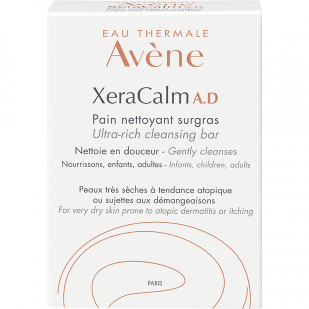 Avène XeraCalm A.D Sabonete de Limpeza Ultra Rico, sabonete de limpeza sem sabão para pele muito seca com tendência a eczema atópico e prurido. O XeraCalm A.D Sabonete de Limpeza Ultra Rico limpa suavemente e protege a pele muito seca, com tendência a eczema atópico e prurido. Este sabonete dermatológico sem sabão, com uma base de limpeza muito suave e ph neutro, oferece uma excelente tolerância cutânea e é perfeitamente adequado para a pele de bebés, crianças e adultos. Sem perfume e não comedogénico, foi desenvolvido para minimizar o risco de reações alérgicas.