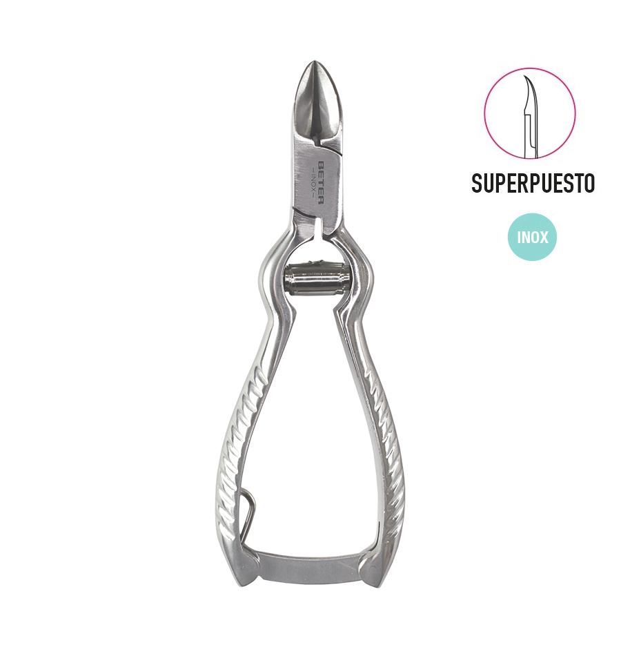 Modelo profissional com fecho ajustado de segurança. Garante um corte regular, preciso, seguro, graças a um rigoroso processo de fabricação com materiais de alta qualidade e afilado individual. Indicado para o cuidado das unhas dos pés. Cabeça sobreposta.