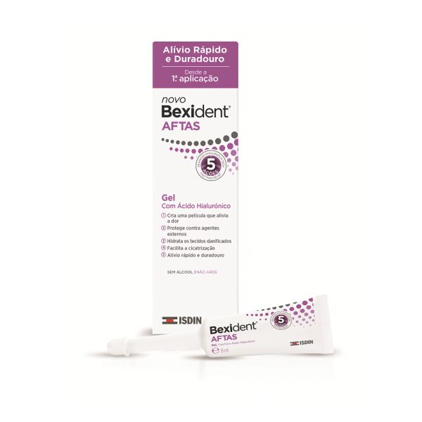Gel indicado no alívio rápido e duradouro de aftas, úlceras bucais, estomatite aftosa recorrente, fricções ou úlceras traumáticas causadas por aparelhos ortodônticos ou dentaduras postiças, pequenas feridas.