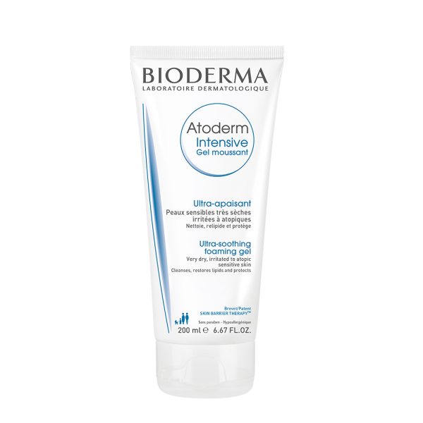 Higiene diária não deslipidante, hidratante, sobreengordurante e reestruturante da barreira cutânea. Com ação antibacteriana. Sem sabão. Sem perfume. Higiene diária da pele atópica. Rosto e Corpo. Bebés, Crianças e Adultos.