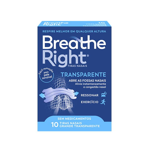 As Tiras Nasais Breathe Right® são faixas com efeito mola que levantam e abrem suavemente as narinas para melhorar o fluxo de ar, ajudando a respirar melhor. As tiras Breathe Right® aliviam instantaneamente a congestão nasal que pode surgir de constipações, alergias e de um desvio do septo.