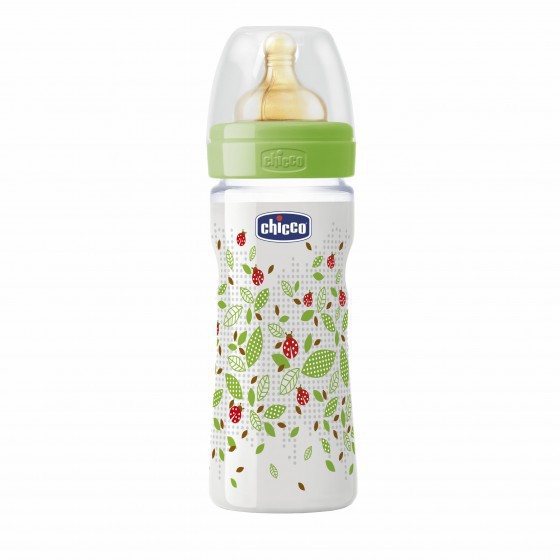 Biberão Benessere da Chicco de 250 mL com tetina de borracha.