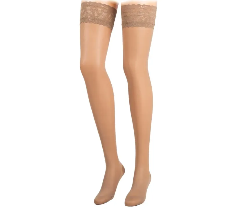 Meias de descanso com biqueira até á raíz da coxa com malha fina e elegante quase opaca.
