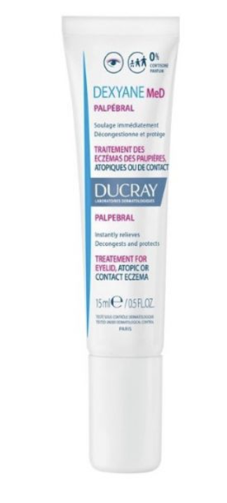 Dexyane MeD Palpebral trata e limita a recorrência de lesões de eczema das pálpebras. A sua textura com efeito penso ultra-hidratante: - alivia imediatamente e descongestiona - alivia o prurido e a dor, reduz a vermelhidão e irritação - restaura a barreira da pele - limita a adesão bacteriana