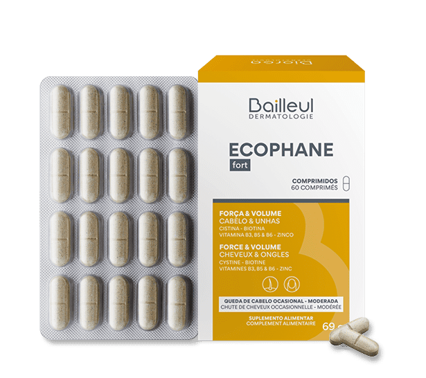 ECOPHANE COMPRIMIDOS alia a eficácia à comodidade de utilização. Um suplemento alimentar com Proteínas, Vitaminas e Oligoelementos fundamentais à manutenção de um cabelo e unhas saudáveis. ECOPHANE COMPRIMIDOS contém espirulina que melhora a assimilação do ferro limitando a queda de cabelo em mulheres com carência de ferro (anemia).