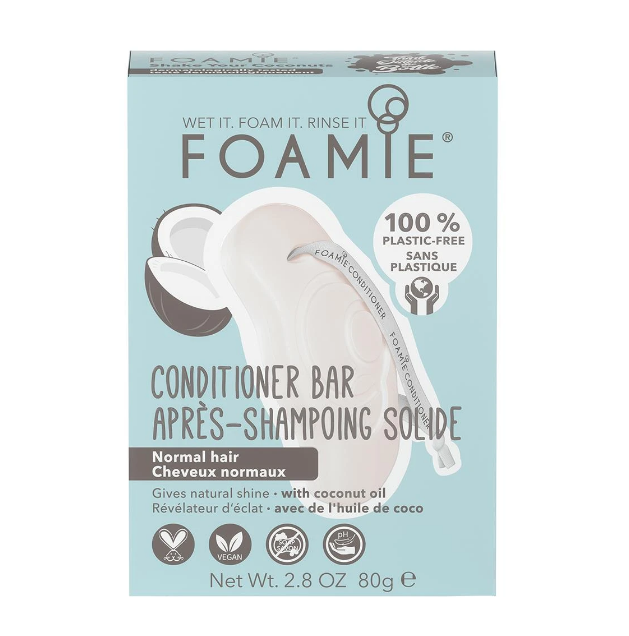 Foamie condicionador sólido em barra é um cuidado capilar premium desenvolvido de acordo com o ph do cabelo e com uma reduzida pegada ecológica.
