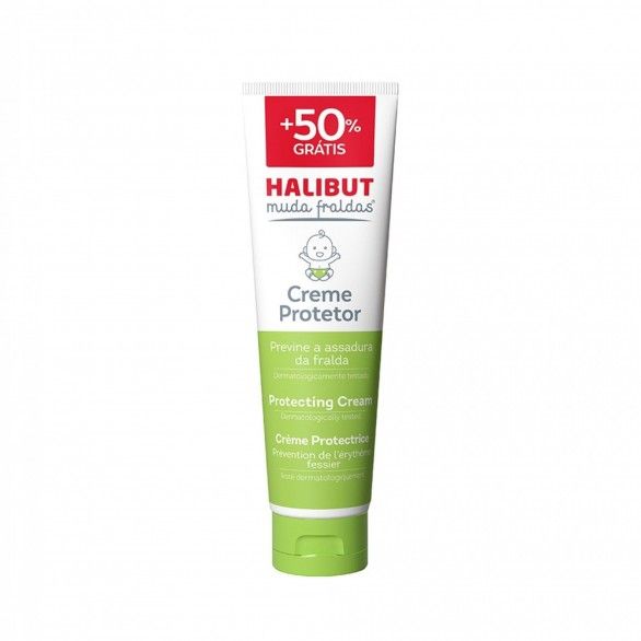 Halibut Muda Fraldas Creme c/ 50% Grátis é um creme para a prevenção da assadura da fralda ou proteção da pele.Possui uma textura cremosa e de fácil aplicação, sendo ideal para o bebé (incluindo o recém-nascido), na zona da fralda e das pregas.Hipoalergénico.Dermatologicamente testado.