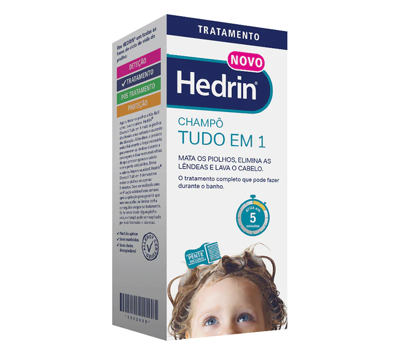 Hedrin Champo Anti-Piolhos é uma solução simples para o tratamento de piolhos. Mata os piolhos em apenas 5 minutos, duas vezes mais eficaz que pentear apenas com o pente, deixando o cabelo fresco e limpo. Pode ser utilizado durante o banho. Elimina os piolhos por desidratação.