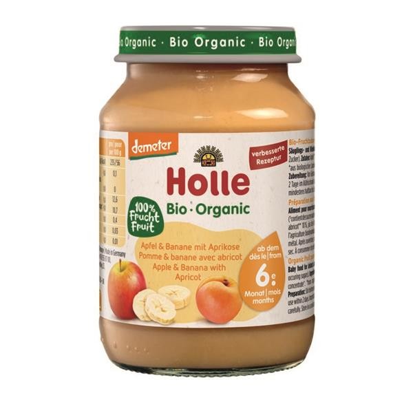 maçã** 79%, banana** 11%, alperce** 10%, sumo de limão* concentrado. *de agricultura biológica, **Demeter (de agricultura biodinâmica).