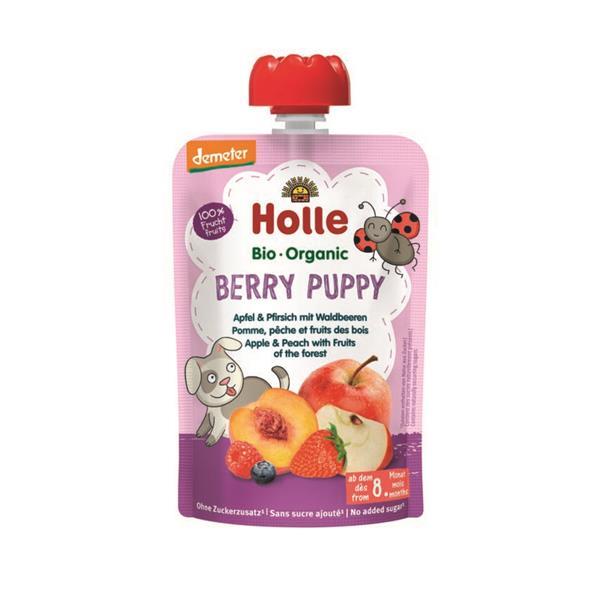 Puré de frutos de agricultura biológica - maçã, pêssego e frutos vermelhos