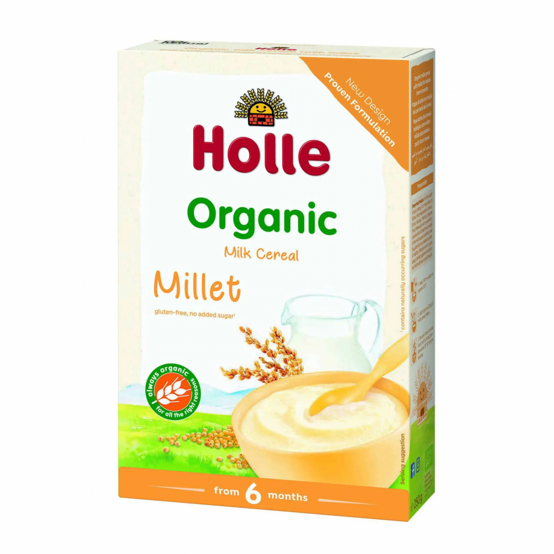 As papas biológicas de cereais lácteas são elaboradas a partir de 99% de ingredientes produzidos em modo biológico. Feitas a partir de cereais integrais com qualidade Demeter, óleo biológico vegetal premiado e leite biológico de vacas criadas no seu ambiente natural (de acordo com os regulamentos de produção biológica da União Europeia).