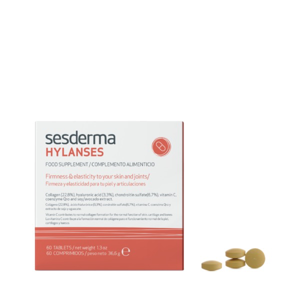 Sesderma Hylanses Reafirmante em comprimidos ajuda a combater as rugas profundas, a flacidez e falta de firmeza na pele do corpo e rosto.