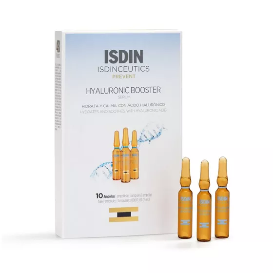 Solução facial em ampolas com uma avançada combinação de duas moléculas de ácido hialurónico, de médio e baixo peso molecular, que ajudam a pele a recuperar os seus níveis de hidratação para conseguir uma pele radiante.