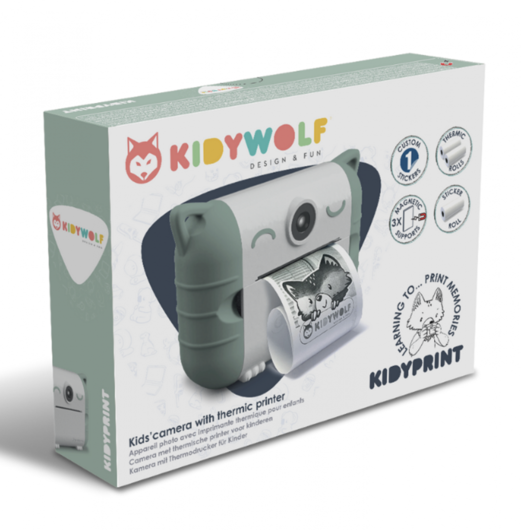 Focada na imaginação e criatividade, a KIDYPRINT oferece uma variedade de adesivos para personalizar a câmera e 21 efeitos de filtro divertidos para tornar cada foto numa criação única. Com uma câmera frontal e traseira, a KIDYPRINT oferece uma experiência fotográfica super divertida para as crianças.