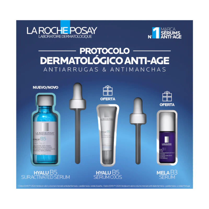 La Roche-Posay Hyalu B5 Coffret 2025, um protocolo dermatológico anti-idade e antimanchas que atua em profundidade para regenerar e uniformizar a pele. Ideal para quem procura uma rotina completa com resultados visíveis desde as primeiras aplicações.