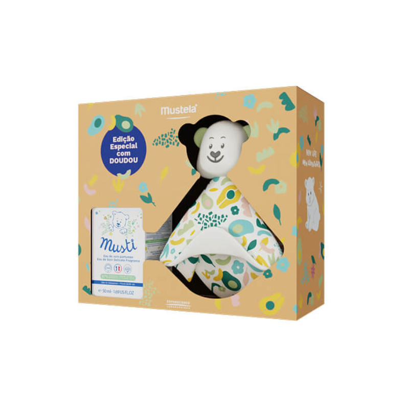 Coffret Musti Natal Pastel. O doudou Musti Pastel, a acompanhar o dia a dia dos bebés e crianças, com o encanto do perfume Mustela.