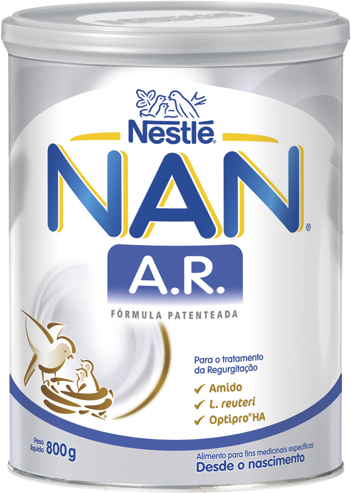 NAN A.R. é uma fórmula anti regurgitação hipoalergénica, que deve ser utilizada sob supervisão de um profissional de saúde.