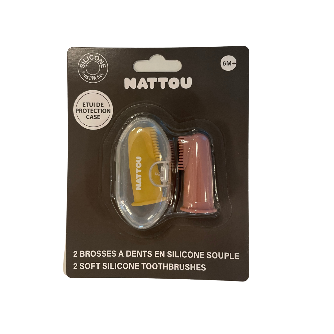 Nattou Escova Dentes Silicone Rosa/Amarelo 6M + Caixa de proteção