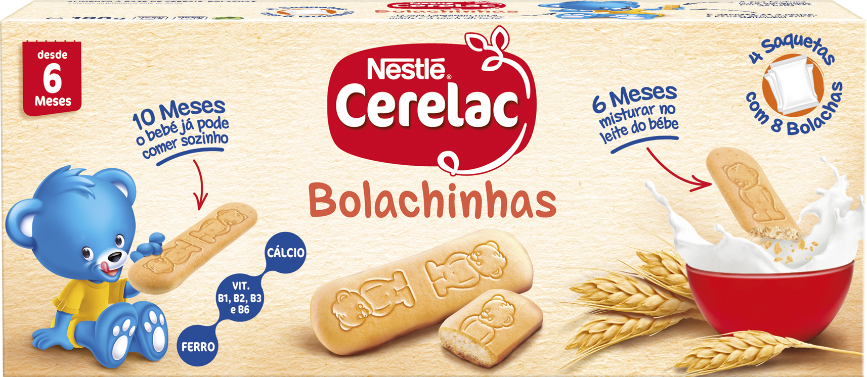 CERELAC Bolachinhas foram especialmente desenvolvidas a pensar nas necessidades dos bebés a partir dos 6 meses. Podem ser dissolvidas no biberão ou podem ser consumidas inteiras por bebés a partir dos 10 meses.