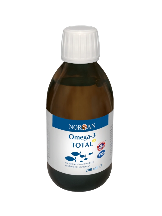Omega-3 Total (200 ml) é uma combinação única de óleo de peixe natural com elevado teor de EPA e azeite extra virgem proveniente de agricultura biológica (antioxidante).