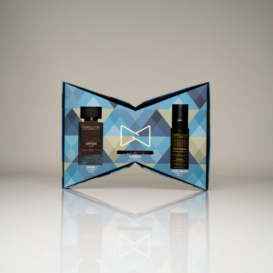 Gift Box da marca Papillon - conjunto cuidadosamente selecionado de produtos de cosmética exclusivamente projetados para o homem moderno, perfeitamente complementados por uma pulseira única. Este pacote não apenas realça a sua beleza e confiança.