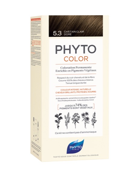 Coloração permanente com pigmentos vegetais e sem amoníaco, aliando performance da cor, beleza do cabelo e respeito pelo couro cabeludo. A cor não desbota e cobre 100% os cabelos brancos desde a primeira aplicação, independentemente da cor (com ou sem reflexos). Longa duração. Sem amoníaco, sem PPD e sem resorcina. Castanho Claro Dourado.