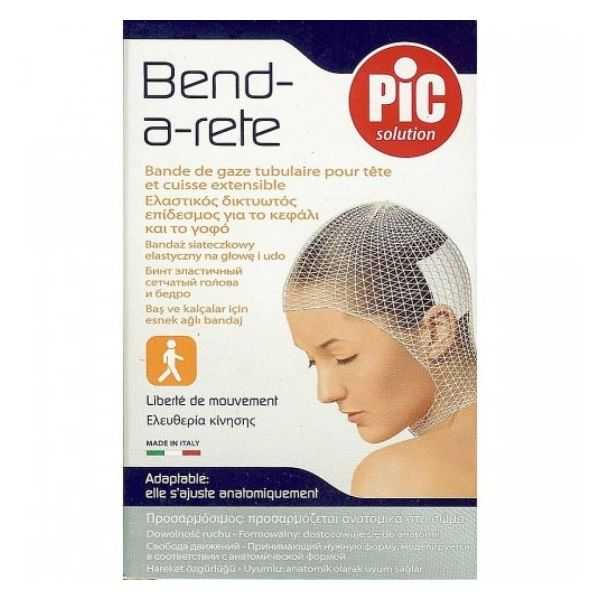 Ligadura em rede elástica. Ajusta-se anatomicamente à cabeça ou coxa.