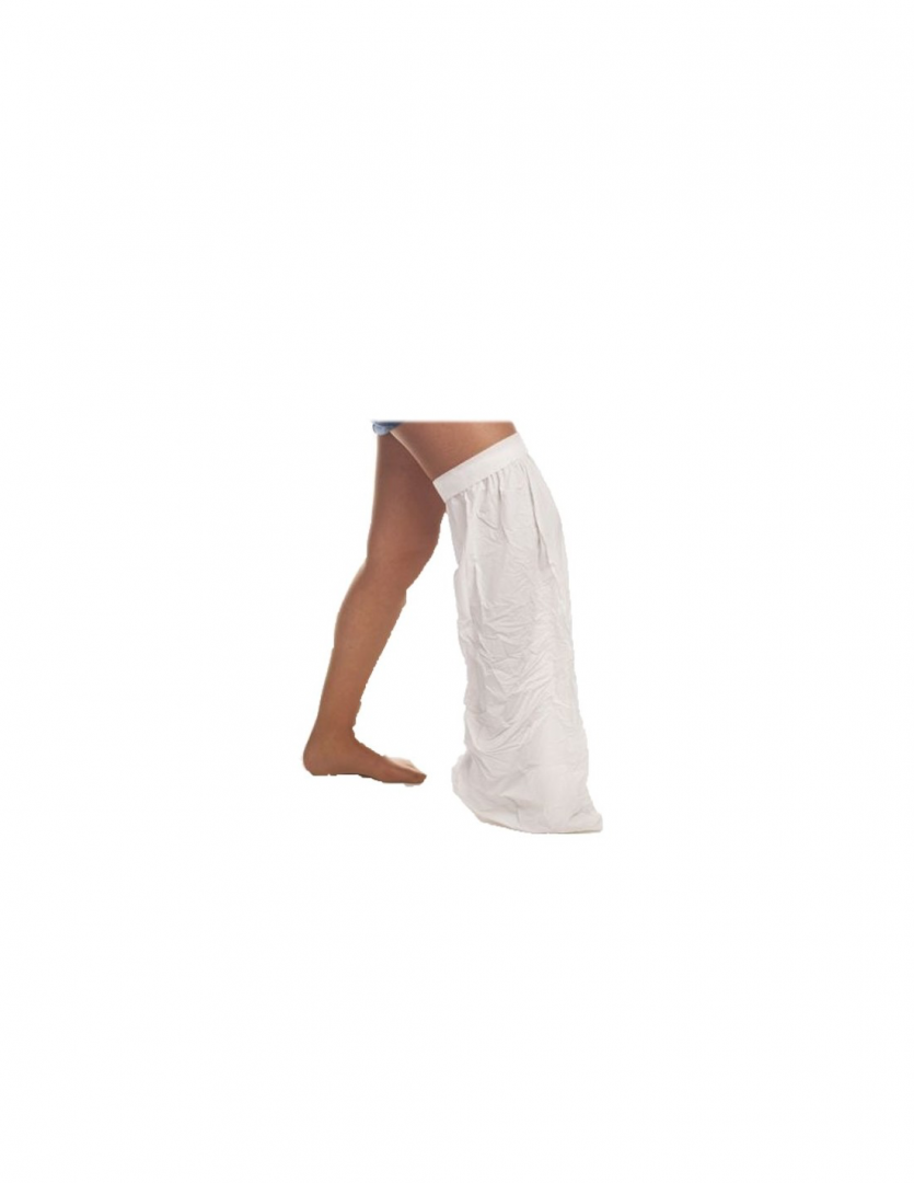 Prim Cobre Gesso Perna 43 x 43 x 64 R02. É uma cobertura protetora hermética que ajuda a proteger o gesso, o gesso ou ligadura durante o banho ou lavagem. É ideal para perna curta.