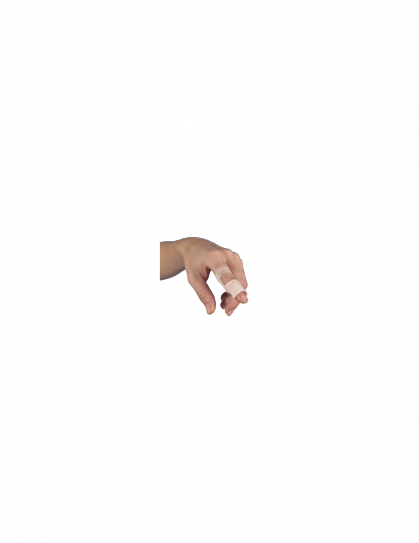 Férula imobilizadora da articulação interfalângica proximal. Fabricada com polietileno.