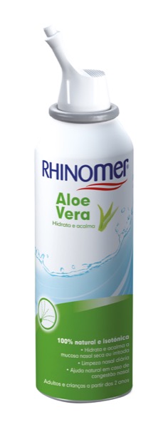 Rhinomer Aloe Vera. Solução natural de água do mar isotónica. Com Aloe Vera. Limpeza e descongestão natural. Hidrata e acalma a mucosa nasal seca ou irritada. Limpeza nasal diária. Ajuda natural em caso de congestão nasal.