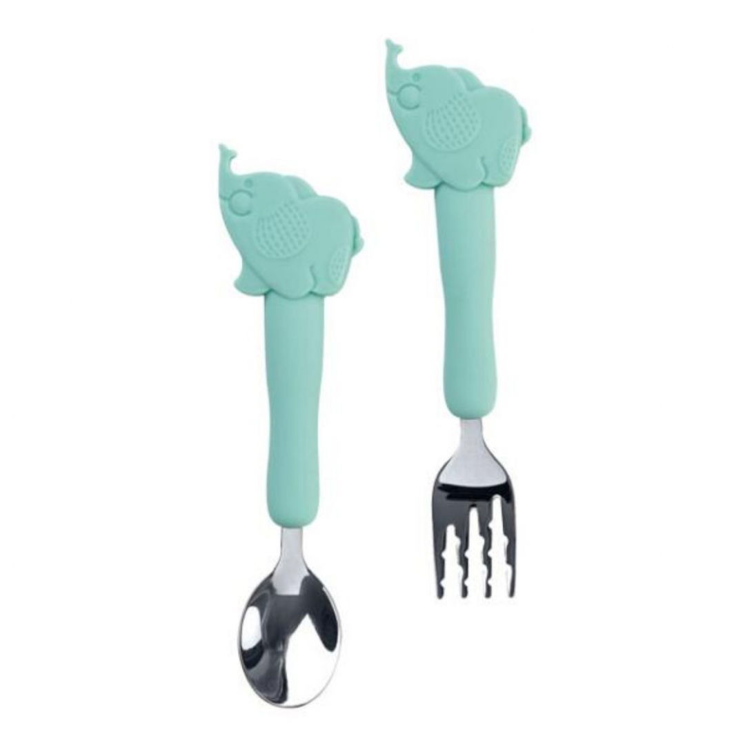 Saro Talheres Infantis Metal Elefantes Verde 1746