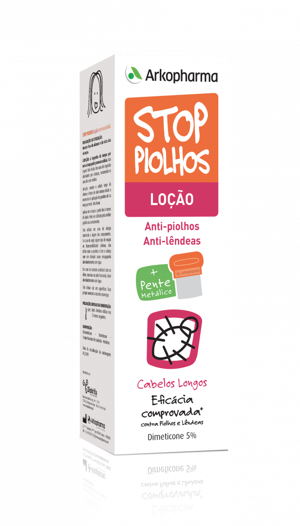 MODO DE UTILIZAÇÃO: Uso externo. Em crianças a loção deve ser aplicada por um adulto ou sob a supervisão de um adulto. Fechar bem o frasco após o uso e lavar as mãos. 1) Aplicar STOP PIOLHOS® Loção anti-piolhos e anti-lêndeas de forma uniforme sobre o cabelo seco. Massajar bem até impregnar todo o cabelo e couro cabeludo. Deixe STOP PIOLHOS ® Loção atuar no cabelo, no mínimo, durante 10 minutos*. A textura oleosa de STOP PIOLHOS Loção ajuda a desembaraçar o cabelo facilitando a passagem do pente anti-piolhos. 2) Lavar o cabelo com champô e após o enxaguamento passar novamente o pente anti-piolhos. Aconselha-se a repetir a aplicação do mesmo modo 8 a 10 dias depois para prevenir a reinfestação.