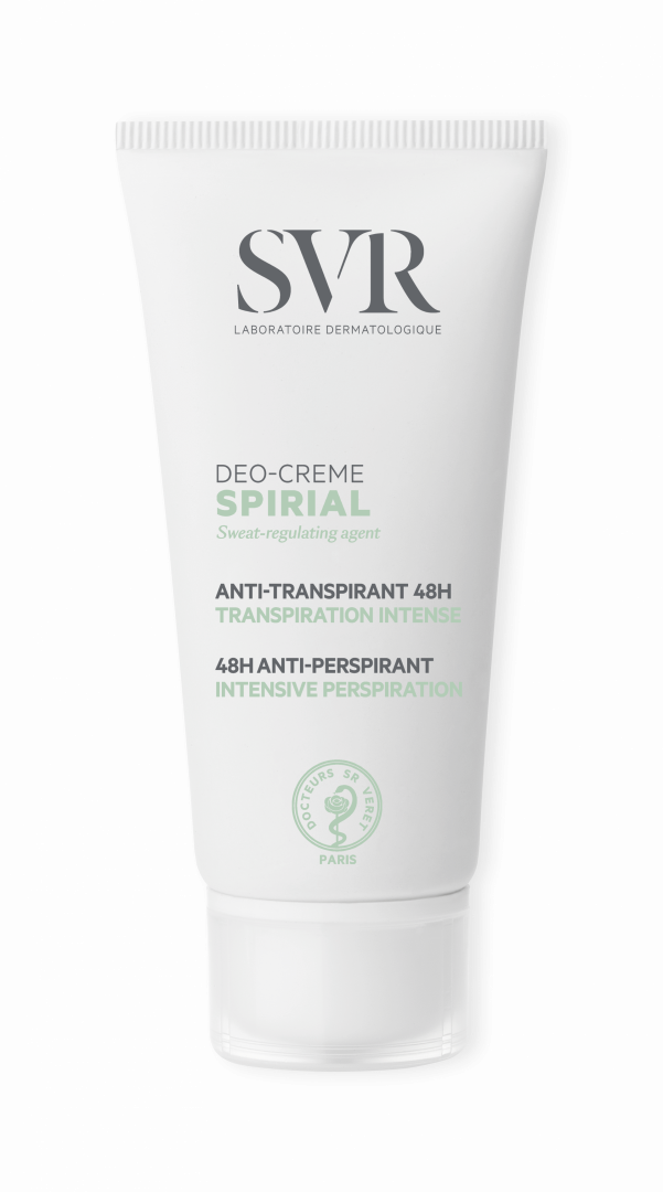 SPIRIAL CREME é uma fórmula de elevada tolerância especialmente desenvolvidas para o uso diário em situações de transpiração normal a excessiva, incluindo na pele mais sensível. Sem perfume, sem álcool, sem parabenos, sem deixar mancha branca e Eficácia de 48h cientificamente provada.