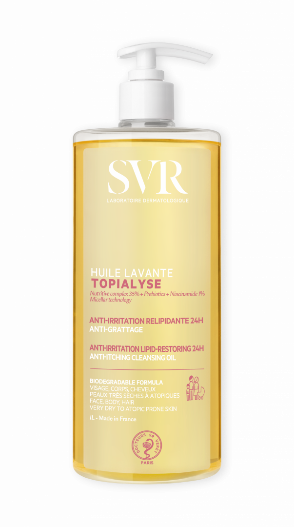 TOPIALYSE HUILE LAVANTE é um cuidado de limpeza eficaz e constitui o primeiro passo na sua rotina de cuidados de pele para acalmar irritações e prurido. Este cuidado luxuoso é rico em lípidos ativos que nutrem e hidratam a pele, mantendo a película protetora contra agressores externos (frio, fricção), assim como evitam que a pele fique seca quando em contato intenso com água. A sua textura sedosa proporciona uma hidratação de 24 horas, para um conforto imediato e duradouro. A pele fica macia e delicadamente perfumada – é o produto favorito de toda a família! Fórmula biodegradável, contém 89% de ingredientes de origem natural. Testado em pele sensível sob controlo dermatológico, pediátrico, oftalmológico e ginecológico. Hipoalergénico. pH fisiológico.