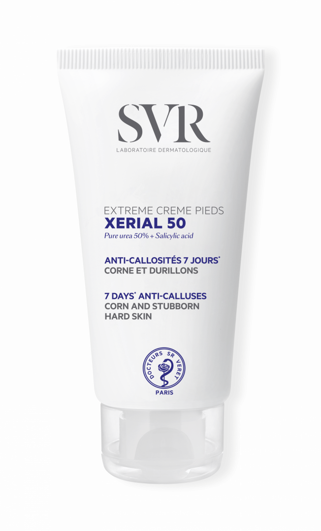 Xerial 50 Extreme reduz calos e calosidades persistentes. Fórmula única baseada na Tecnologia Patenteada de ureia pura para uma ação efetiva sobre todos os tipos de secura da pele.Pés, mãos.