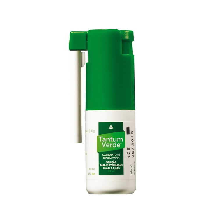 Referências existentes: Tantum Verde 0,15% solução para mucosa oral em nebulizador de 30ml. Tantum Verde 0,30% solução para mucosa oral em nebulizador de 15ml.