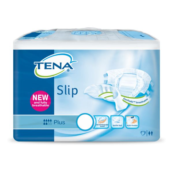 Tena Slip Tamanho S - Plus apresenta um núcleo de ação rápida extremamente absorvente o que proporciona uma elevada segurança contra as fugas.