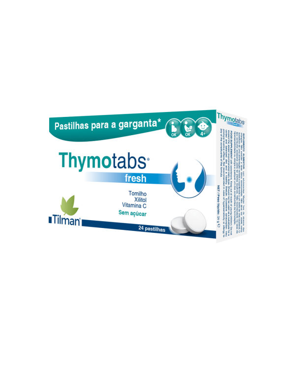 Tilman Thymotabs Fresh são pastilhas, com presença de Xylitol, que aliviam a inflamação da garganta e a rouquidão.