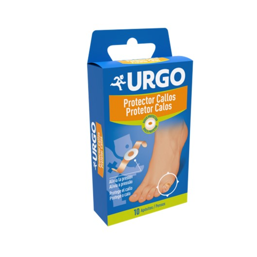 URGO Protetor Calos, com o seu suporte adesivo, mantém o penso no local enquanto o disco protetor evita pressões dolorosas e protege as calosidades do atrito do calçado.