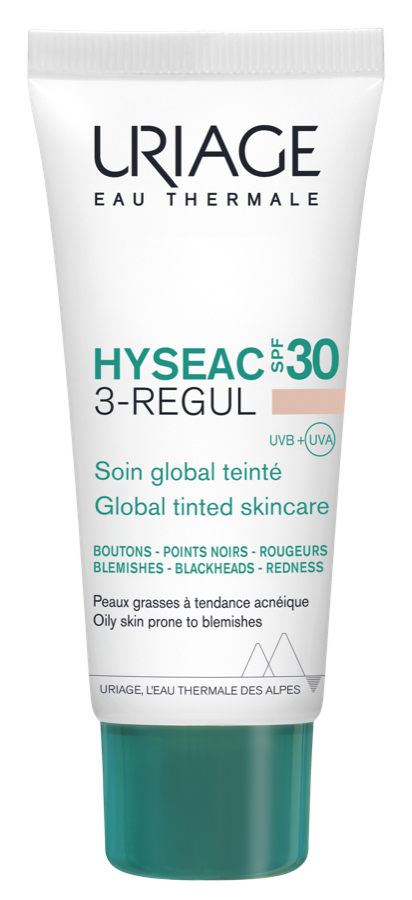 HYSEAC Cuidado Global SPF30 com cor é um produto "tudo-em-um" que ajuda a eliminar manchas (borbulhas, pontos negros) e a limitar o aparecimento de marcas de pele relacionadas com o sol. Protege a pele dos raios UVA, UVB e dos radicais livres, ao mesmo tempo que uniformiza o tom da pele. Com ingredientes dermatológicos chave como os AHA e o Ácido Salicílico, este cuidado refina a textura da pele e ajuda a reduzir as imperfeições da pele oleosa e com tendência acneica. A textura é leve, com um acabamento matificante e não oleoso. Testado dermatologicamente em pele com tendência a manchas. Não comedogénico.