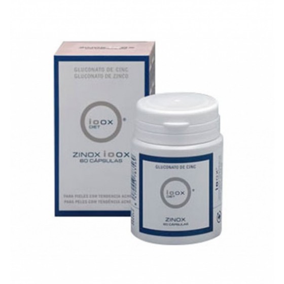 Ioox Zinox Gluconato de Zinco 60 Cápsulas, suplemento alimentar preparado à base de gluconato de zinco e vitaminas A, E e B6.